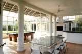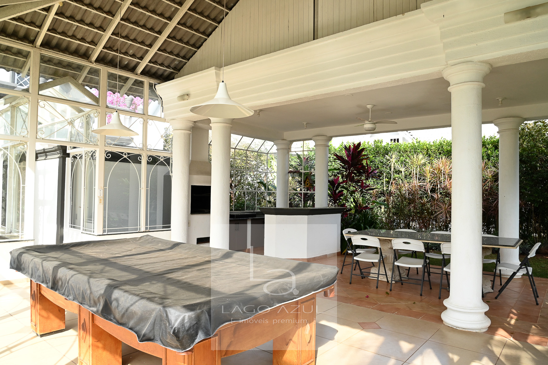 A área externa da casa é um verdadeiro refúgio, com espaço gourmet completo, sala de jogos, churrasqueira e uma bela piscina. A garagem acomoda até quatro carros.