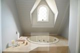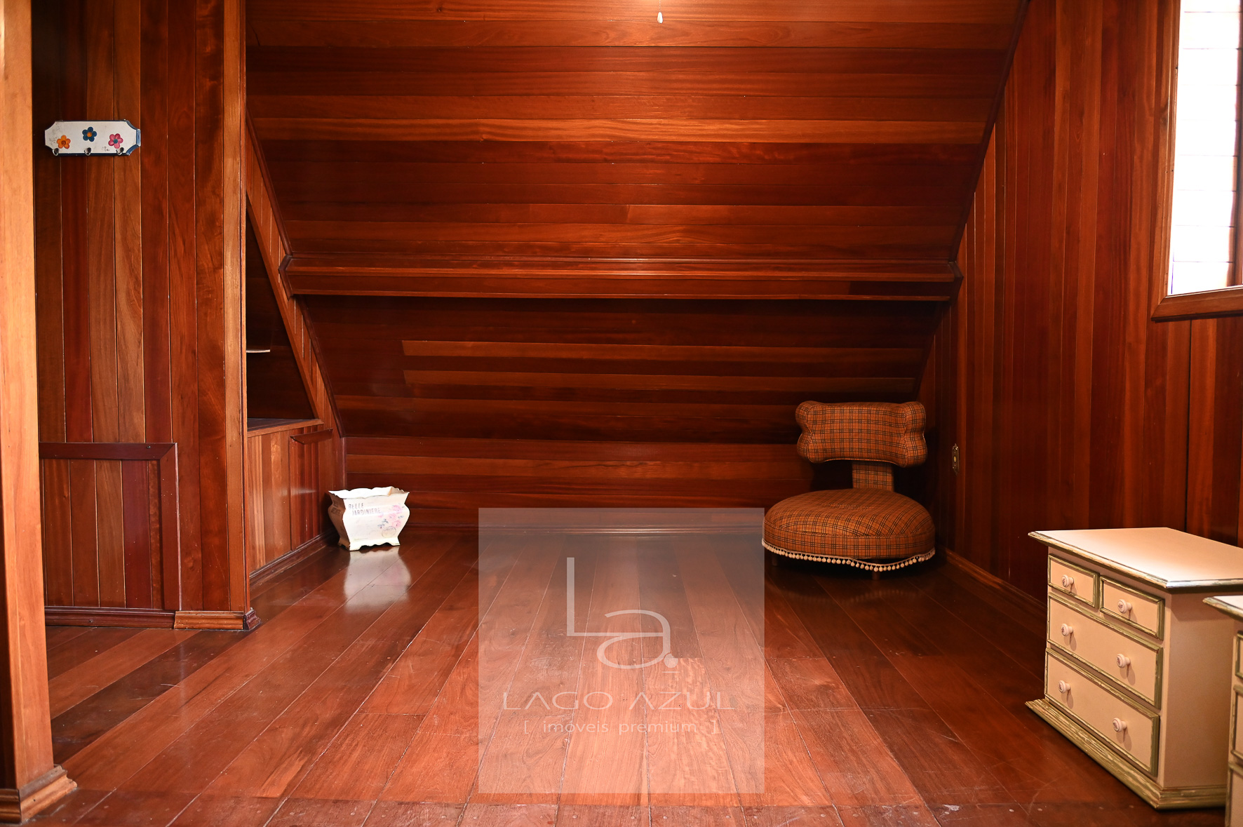 No piso superior, um hall com varanda frontal integrando os ambientes íntimos. São dois dormitórios de solteiro, ambos com varandas com vista para a piscina, atendidos por um banheiro com hidromassagem. A suíte principal possui um espaçoso closet, e o sótão abriga mais uma suíte, perfeita para ser usada como quarto extra, escritório ou espaço multiuso.
