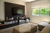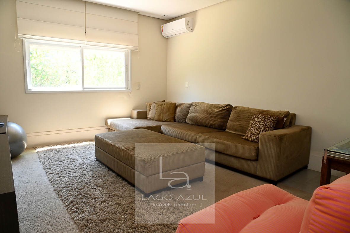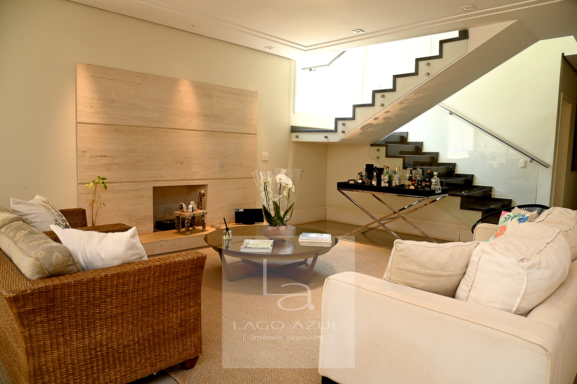 Esta residência combina conforto, sofisticação e lazer em todos os ambientes. No térreo, destacam-se a sala de TV climatizada com piso em porcelanato, uma suíte térrea também com ar-condicionado e piso em porcelanato, a sala de lareira, além da sala de estar e da sala de jantar integradas. A cozinha é prática, com despensa, e a lavanderia completa os espaços funcionais da casa.
