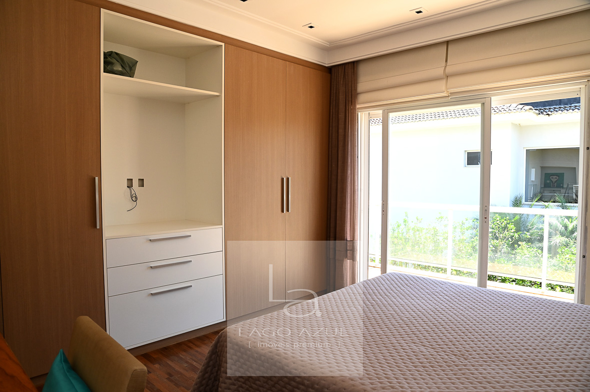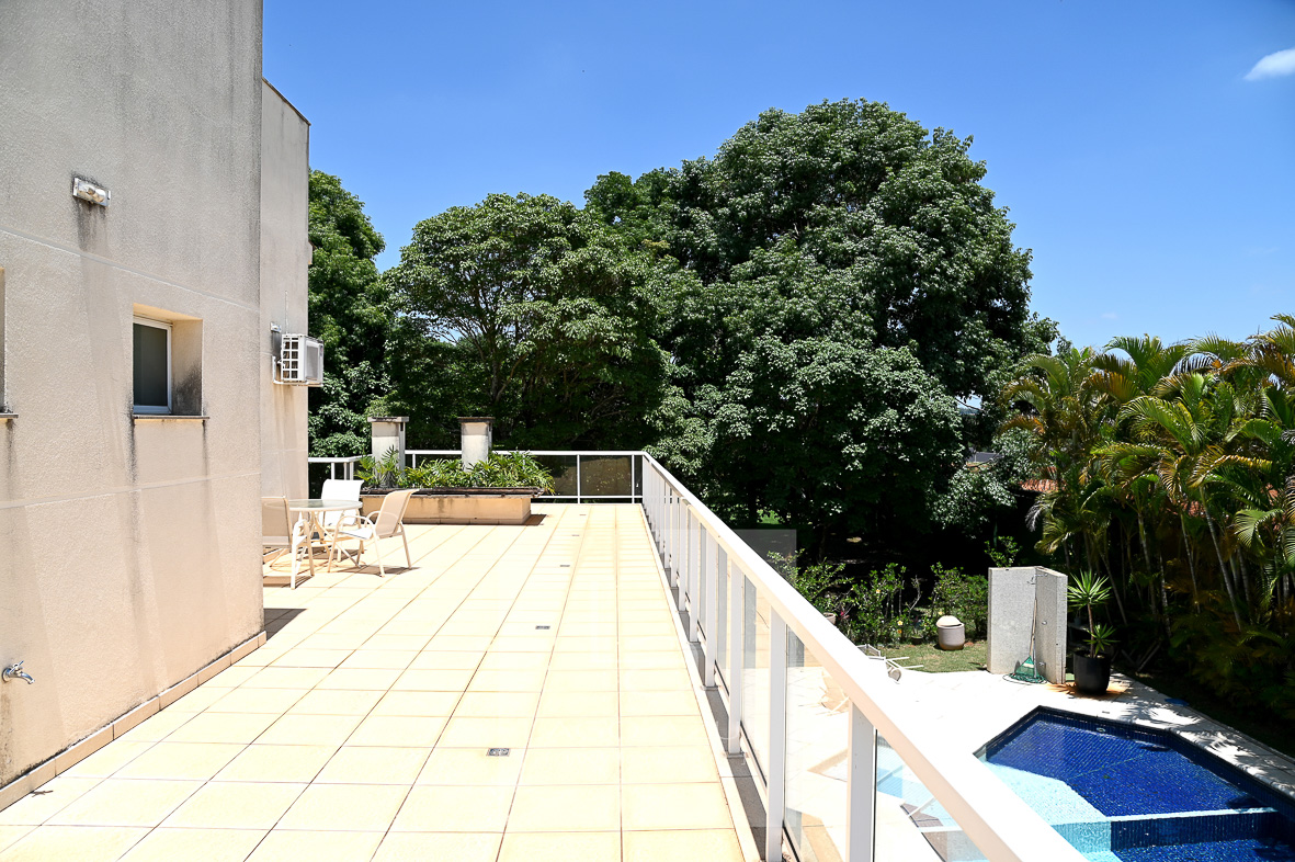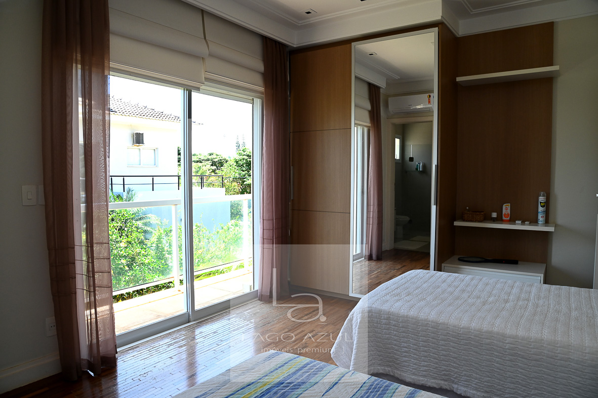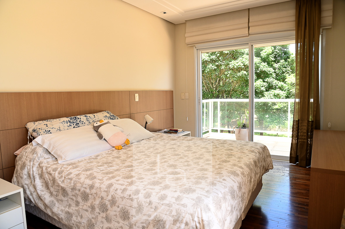 No piso superior, cinco suítes oferecem total conforto e privacidade. Duas delas têm varanda voltada para a rua, enquanto outras duas possuem varanda com vista para o bosque, todas com ar-condicionado e piso em madeira. A suíte master se destaca com uma ampla varanda voltada para o Morro de Ipanema e para a área de lazer, proporcionando uma experiência única.