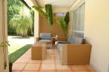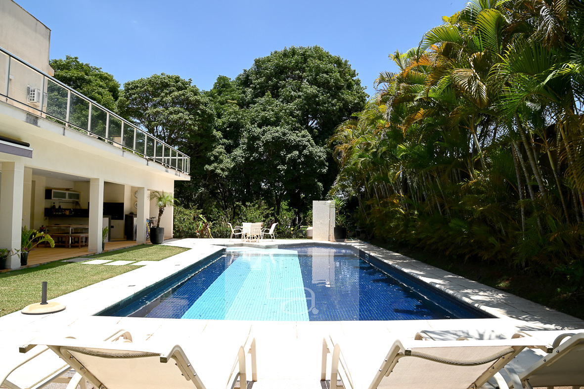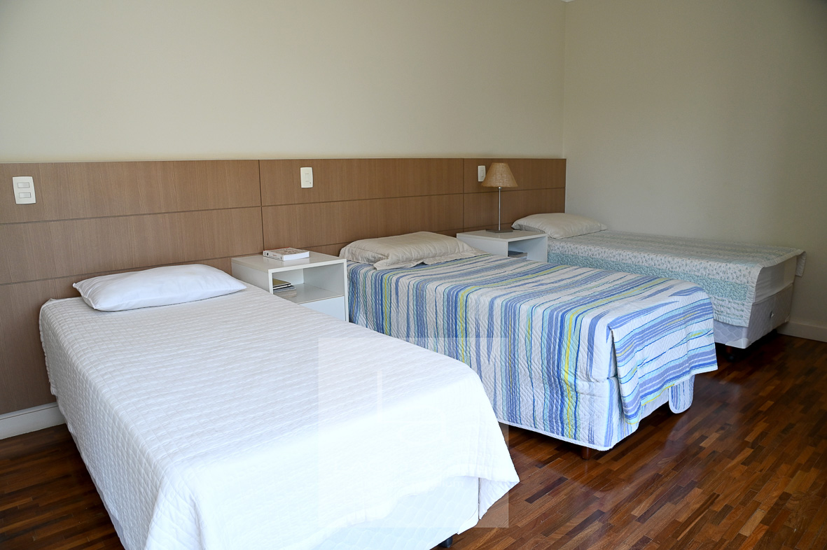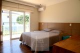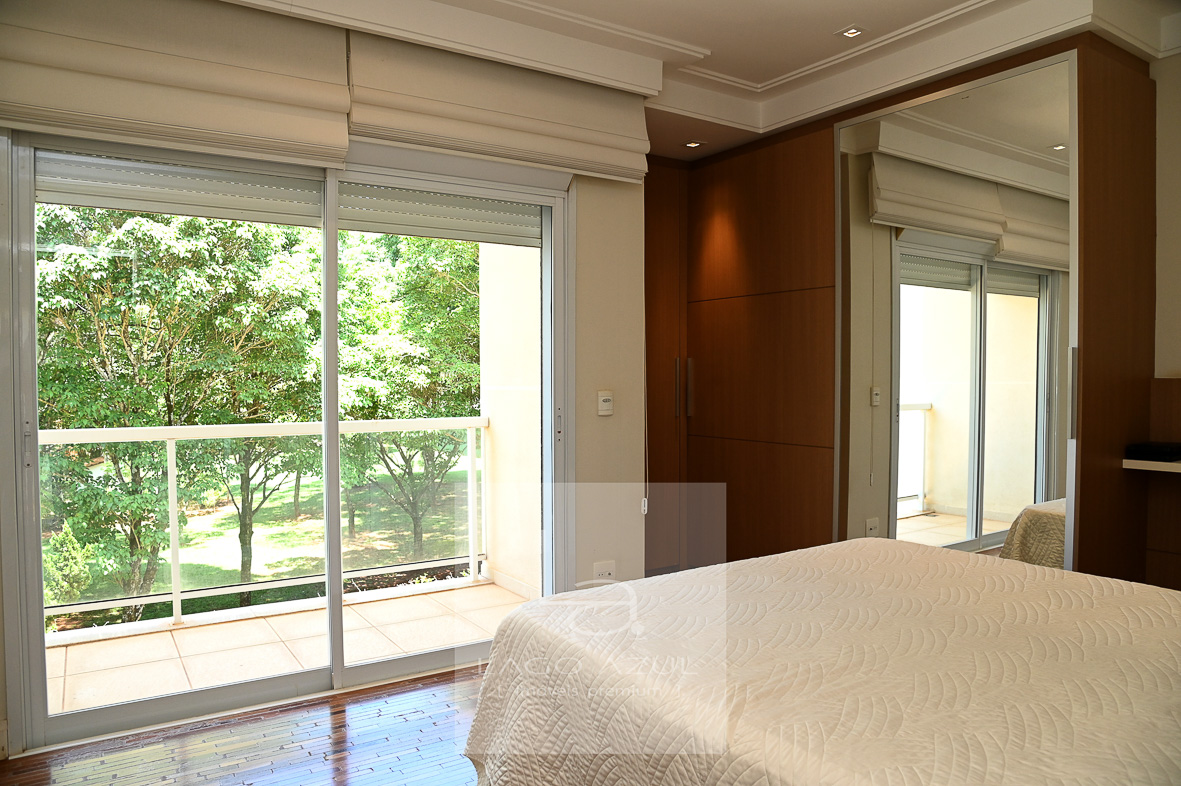 No piso superior, cinco suítes oferecem total conforto e privacidade. Duas delas têm varanda voltada para a rua, enquanto outras duas possuem varanda com vista para o bosque, todas com ar-condicionado e piso em madeira. A suíte master se destaca com uma ampla varanda voltada para o Morro de Ipanema e para a área de lazer, proporcionando uma experiência única.
