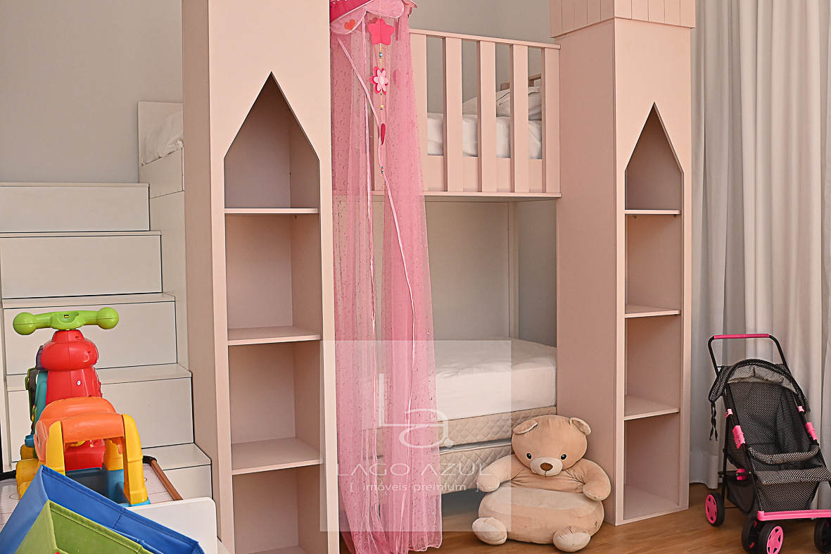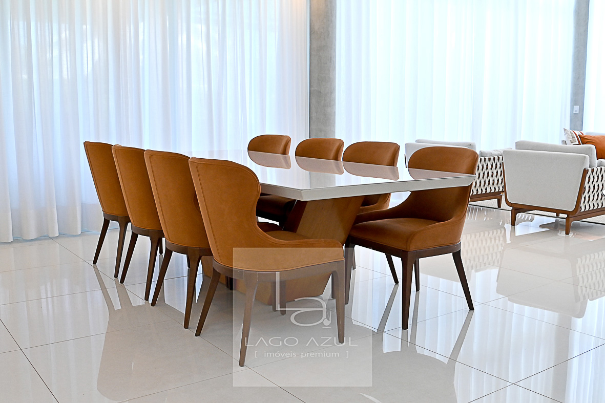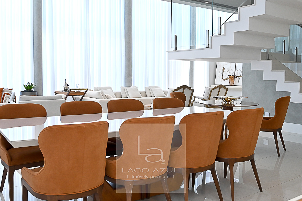 Imóvel possui: 5 suítes, sendo 1 no térreo e 4 no andar superior, todas com closet.