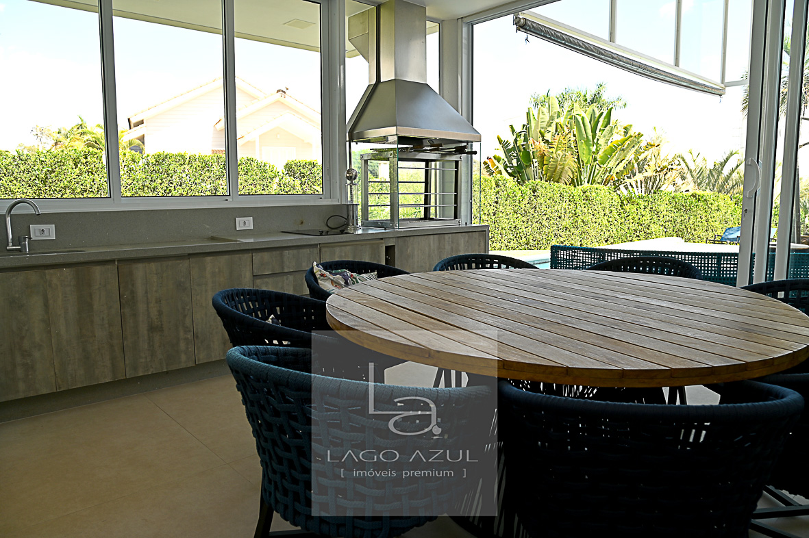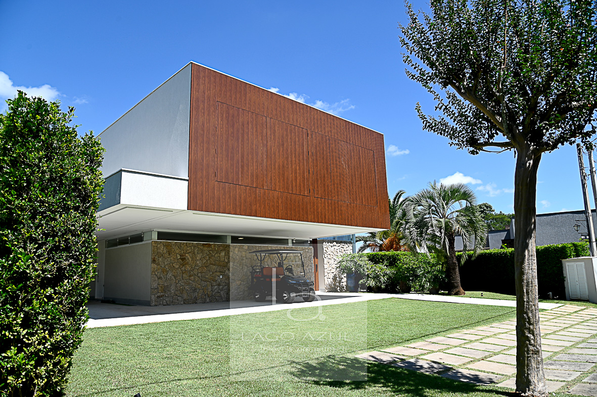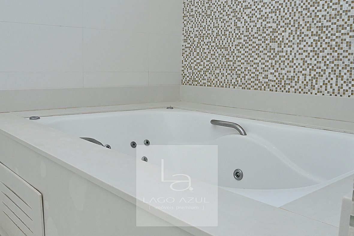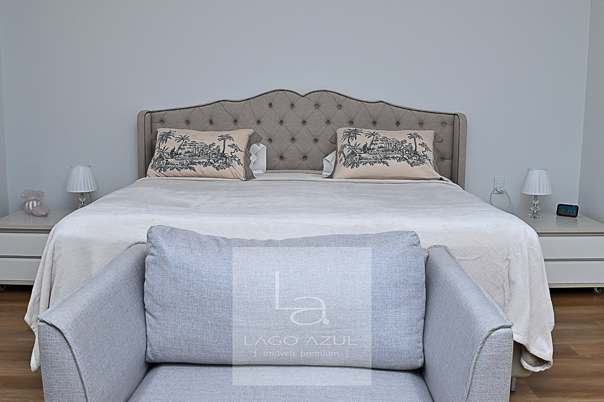 Imóvel possui: 5 suítes, sendo 1 no térreo e 4 no andar superior, todas com closet.