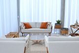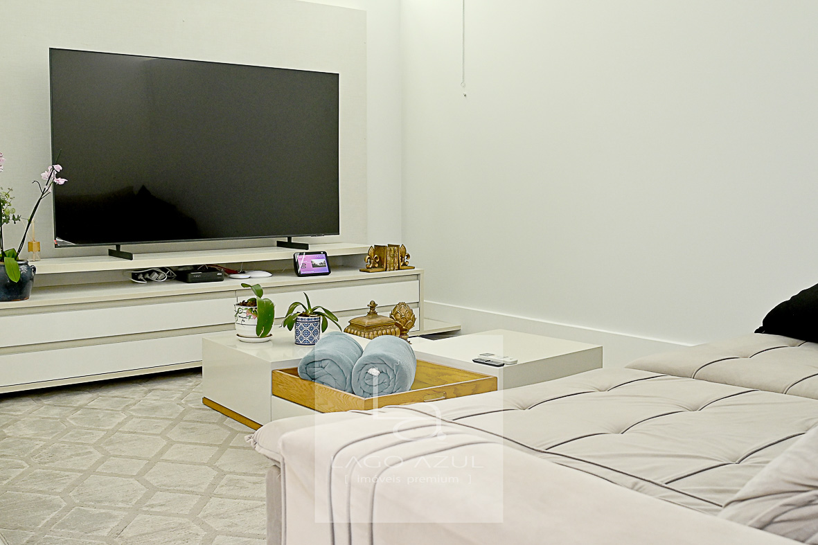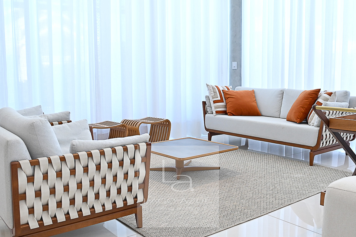 Sala 3 ambientes em L, integrando sofisticação e aconchego.
