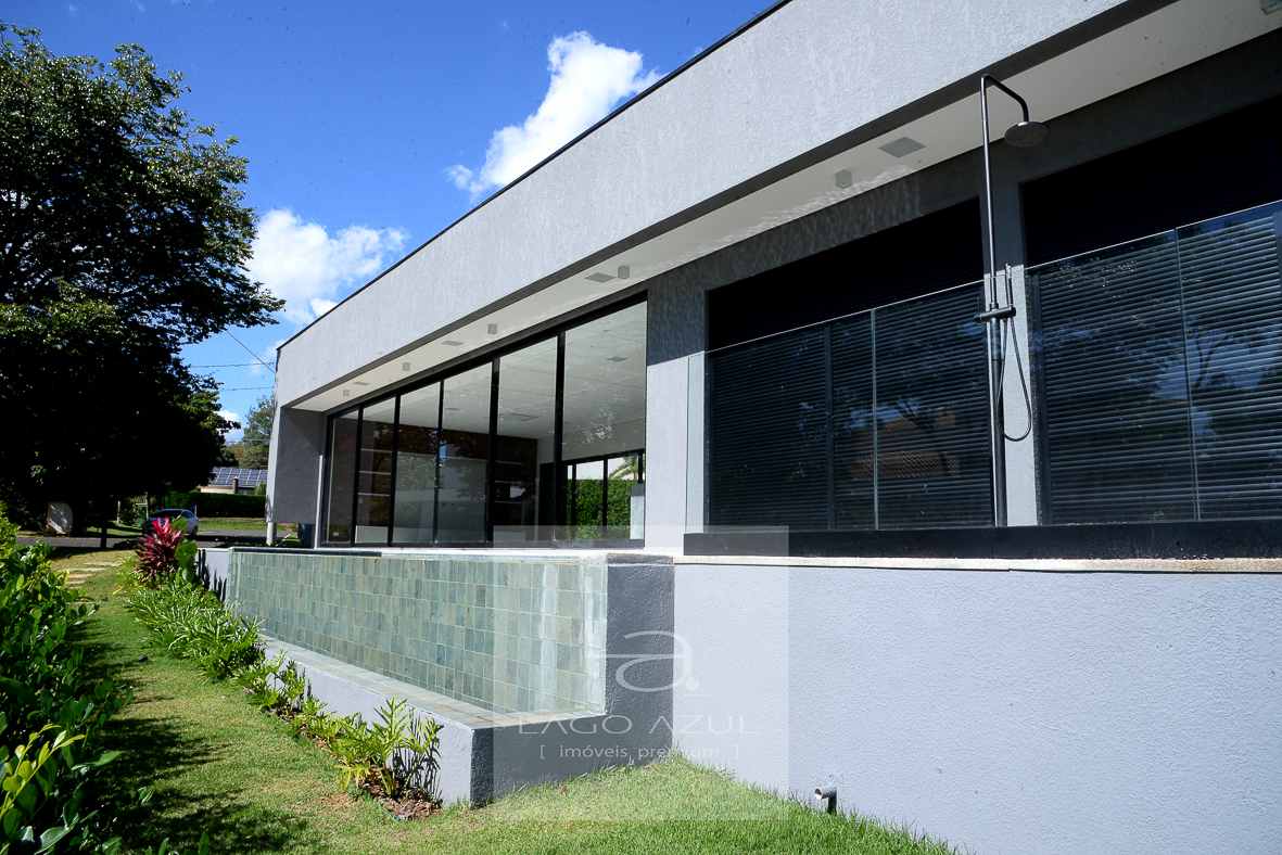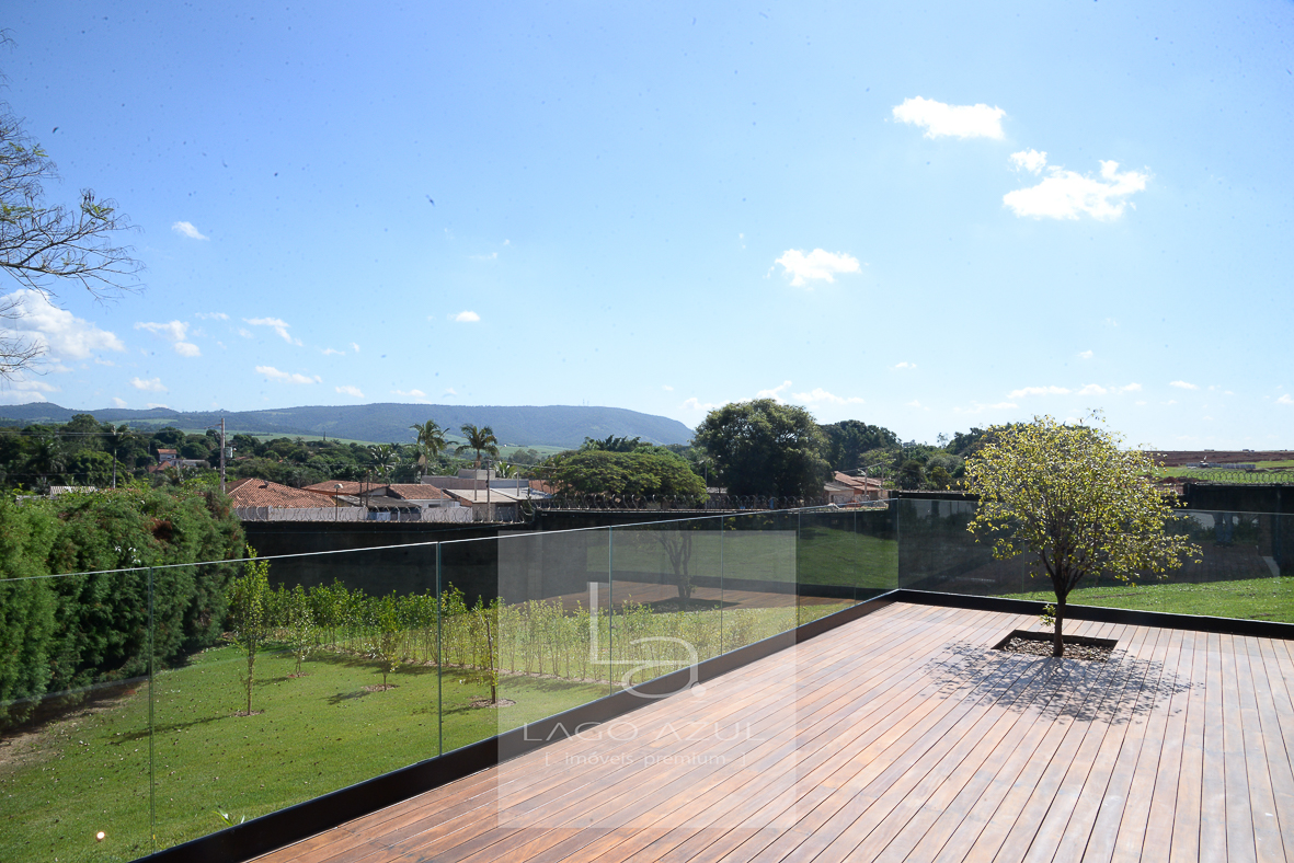 Piso externo todo em “fulget” e belo jardim na lateral e no fundo, sendo que no fundo há um sistema de reciclagem de água pluvial com capacidade de 3.000 litros, coberto por um lindo deck de madeira Cumaru e toda a lateral com um guarda corpo de vidro temperado.