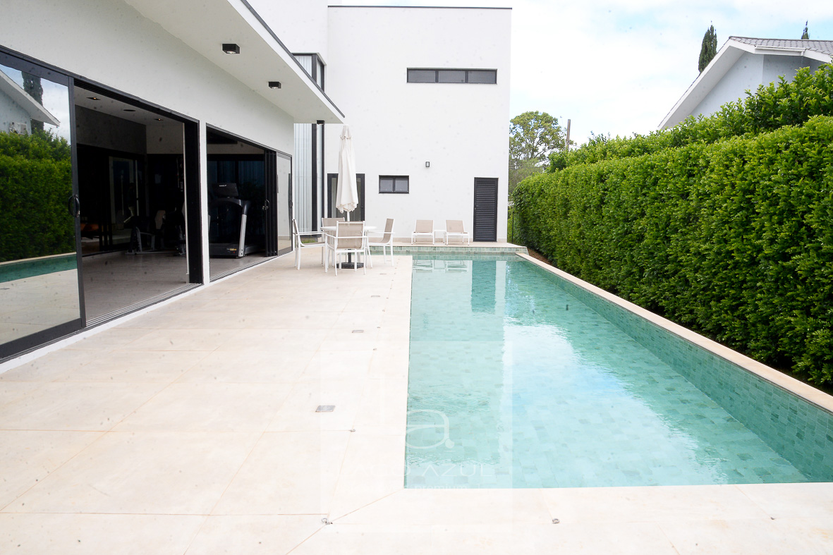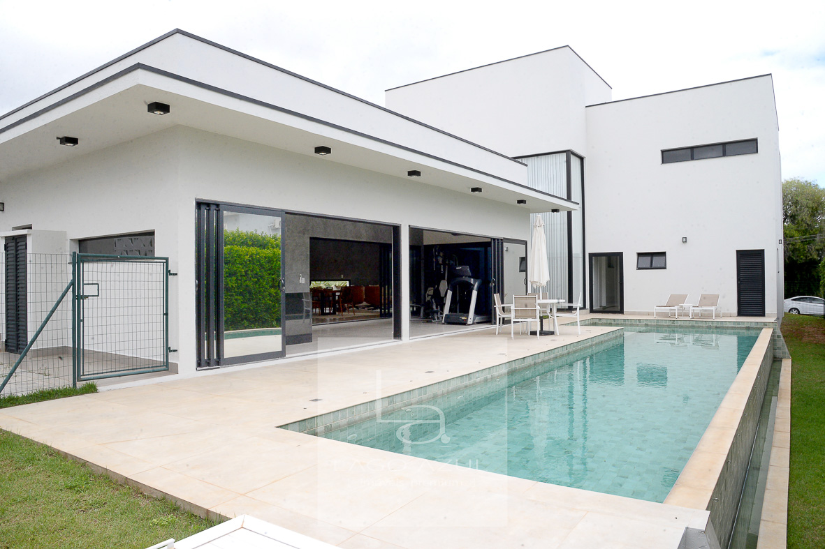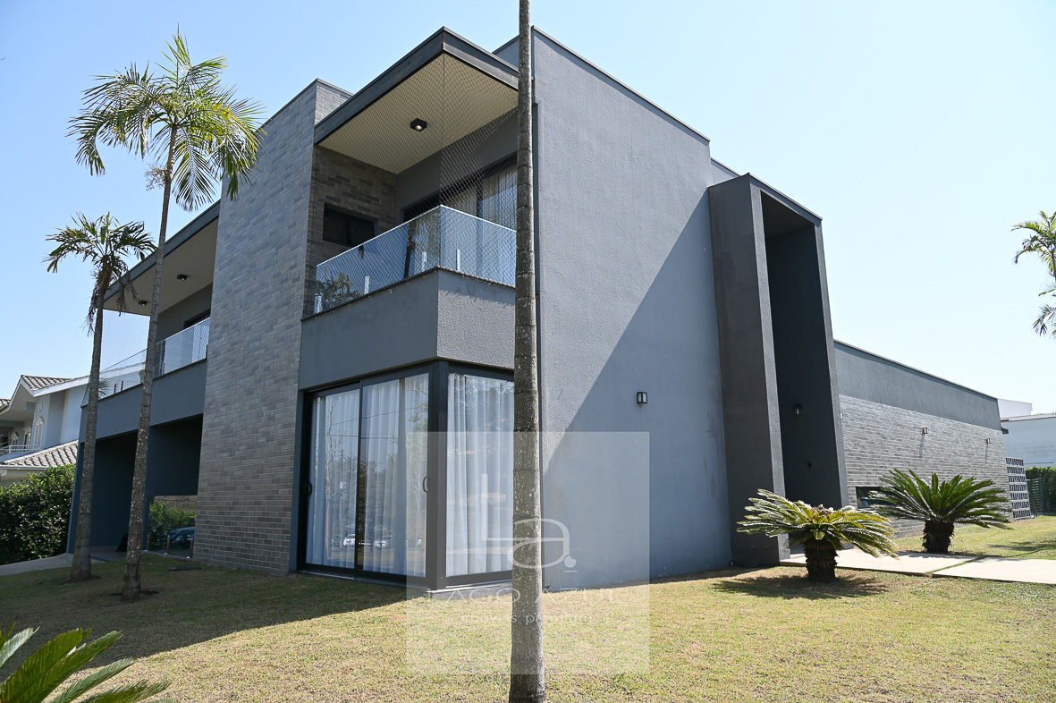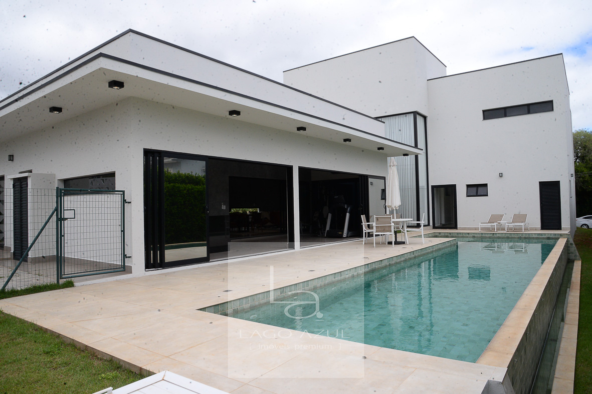Localizada em bela esquina, próxima a portaria 2 do condomínio, esta casa extremamente iluminada, é apaixonante em cada m². Novíssima e com acabamentos impecáveis. Cozinha gourmet com despensa integrada à sala super clean, com 2 ambientes, lavabo e home theater. Área gourmet com churrasqueira e descolada piscina com borda infinita. Possui 4 suítes, sendo 1 com closet e hidro. Garagem coberta para 2 carros e 4 vagas descobertas.