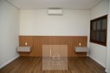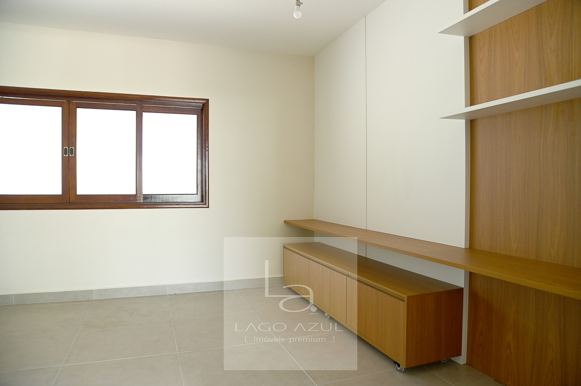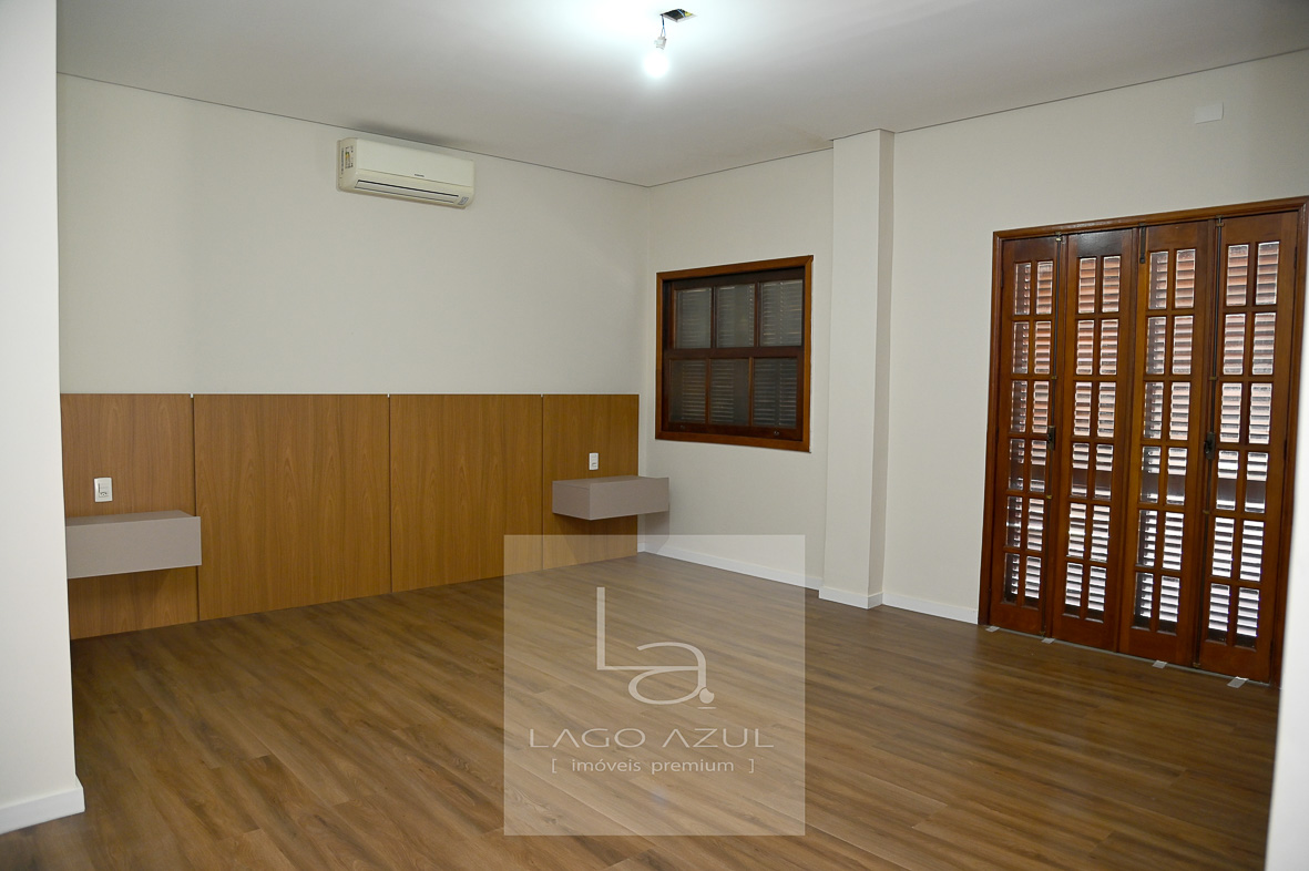Sala ampla para dois ambientes, com pé-direito alto, lareira e integração total com a cozinha e a área de lazer, garantindo excelente circulação e convivência.
