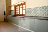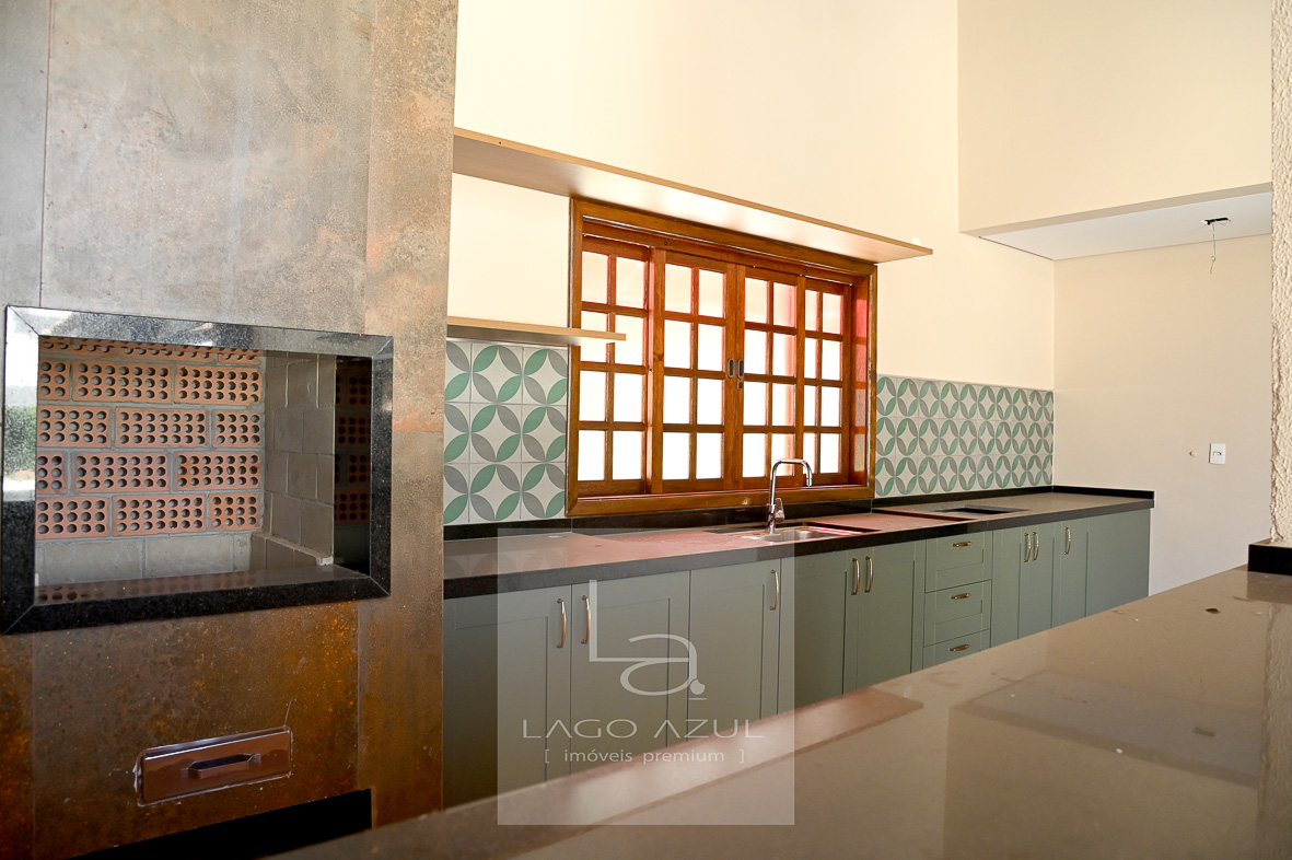 Piscina com vinil novo, banheiro externo e área gourmet integrada à cozinha por passa-prato, equipada com churrasqueira e amplo balcão em granito, perfeita para receber.