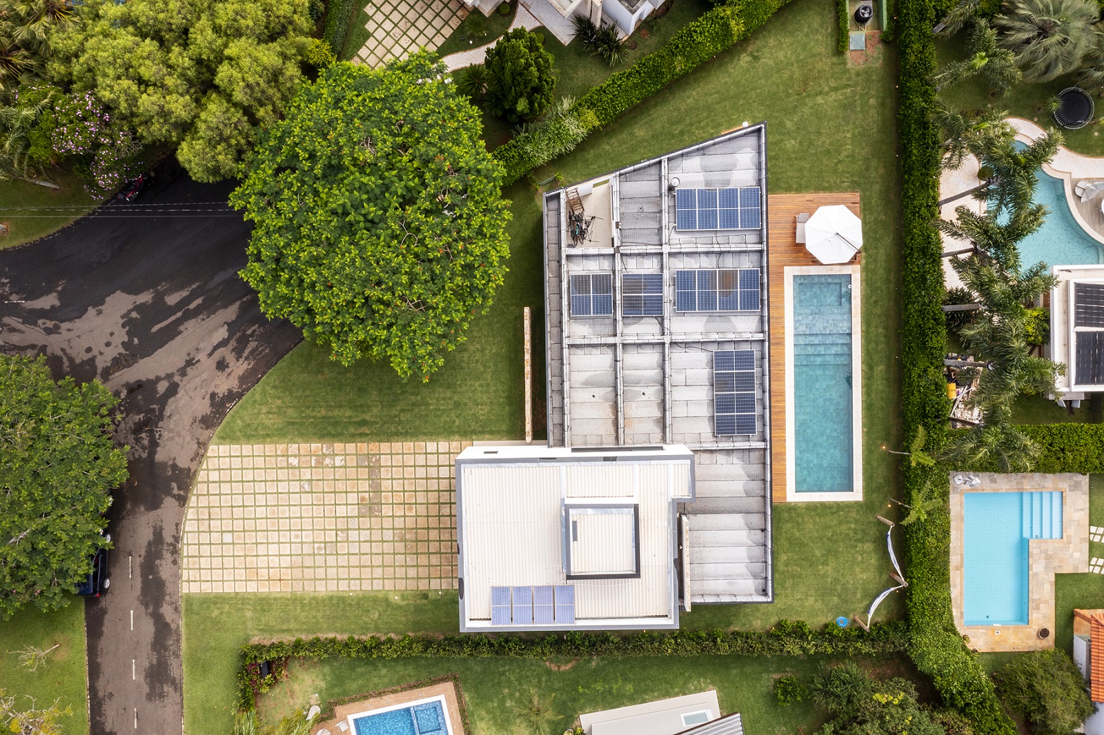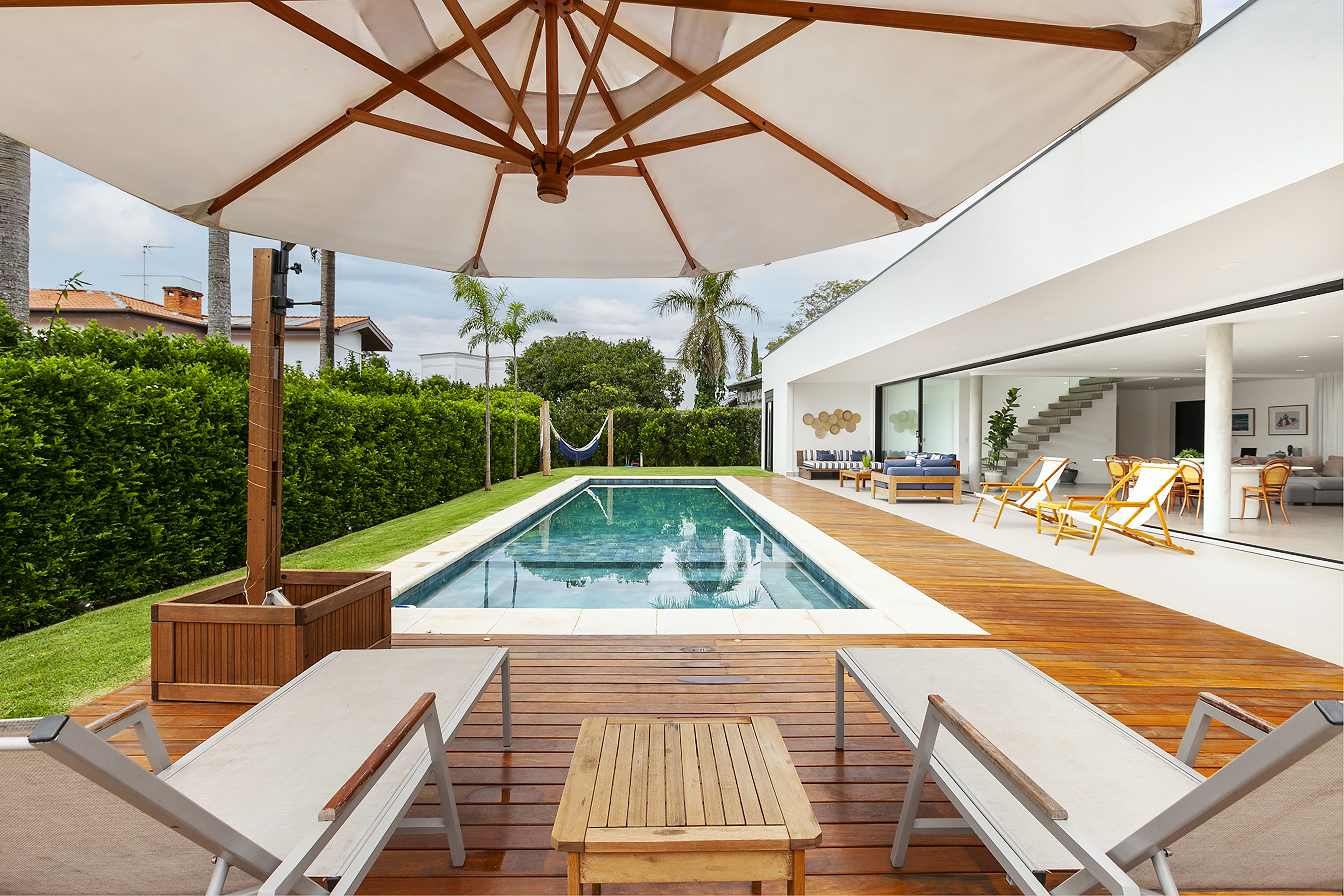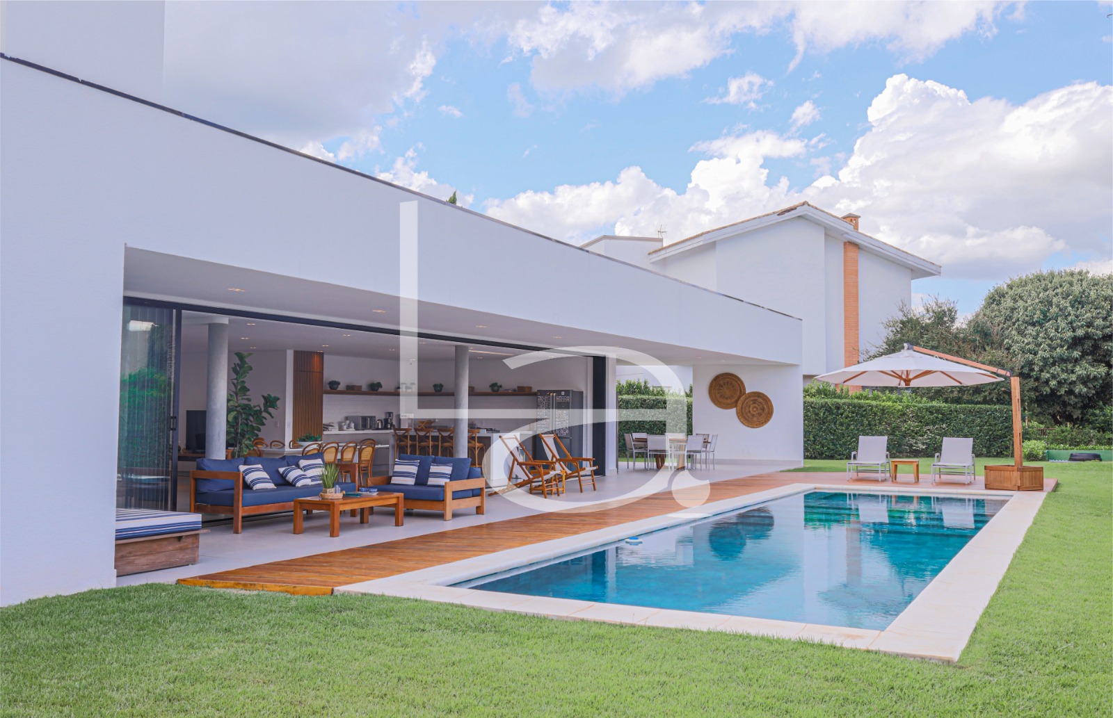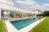 Super clean e elegante para dias plenos com estilo e muita tranquilidade. Possui 5 suítes com ar condicionado, sendo 3 no pavimento superior e 2 no térreo + 01 escritório, lavabo, sala de jantar e estar que se integram a área gourmet com churrasqueira a gás e coifa, vestiário, piscina com spa, (75 mil litros), e deck de madeira. Cozinha americana com grande ilha, despensa, adega, eletrodomésticos, esquadrias automatizadas com tela, área de serviço interna e externa. Além disso, possui móveis planejados e decoração linda e harmônica. Garagem para 12 carros (3 cobertos) e ampla área verde com paisagismo exuberante. Com trocador de calor e geração de energia fotovoltaica.