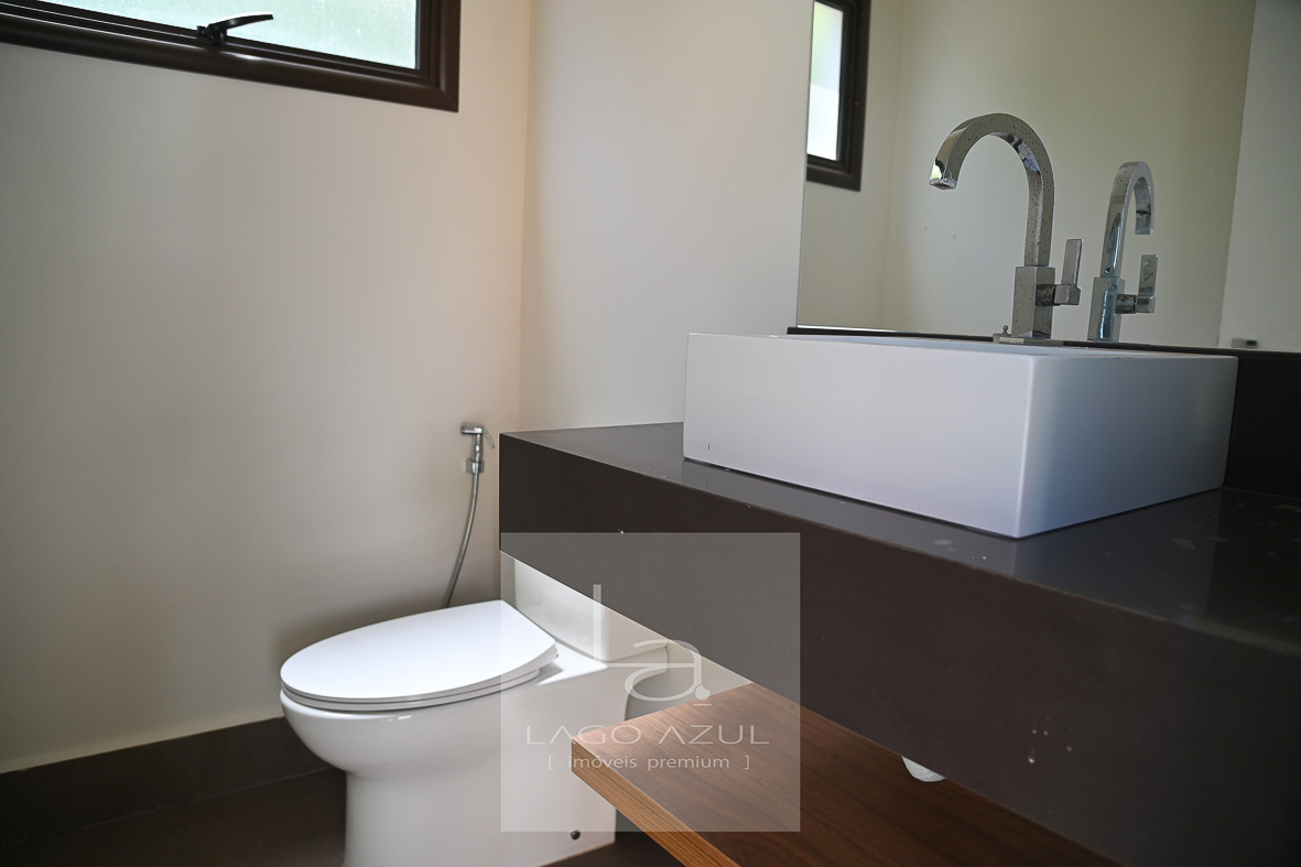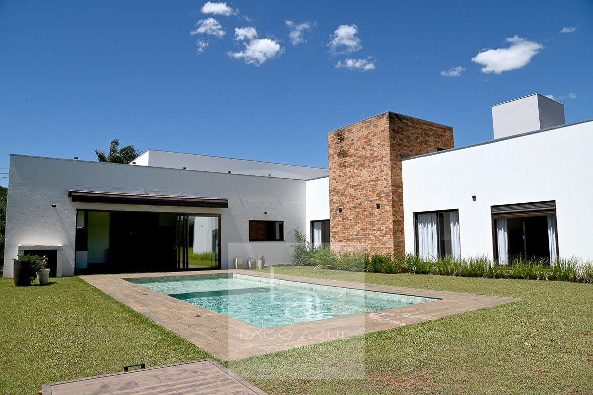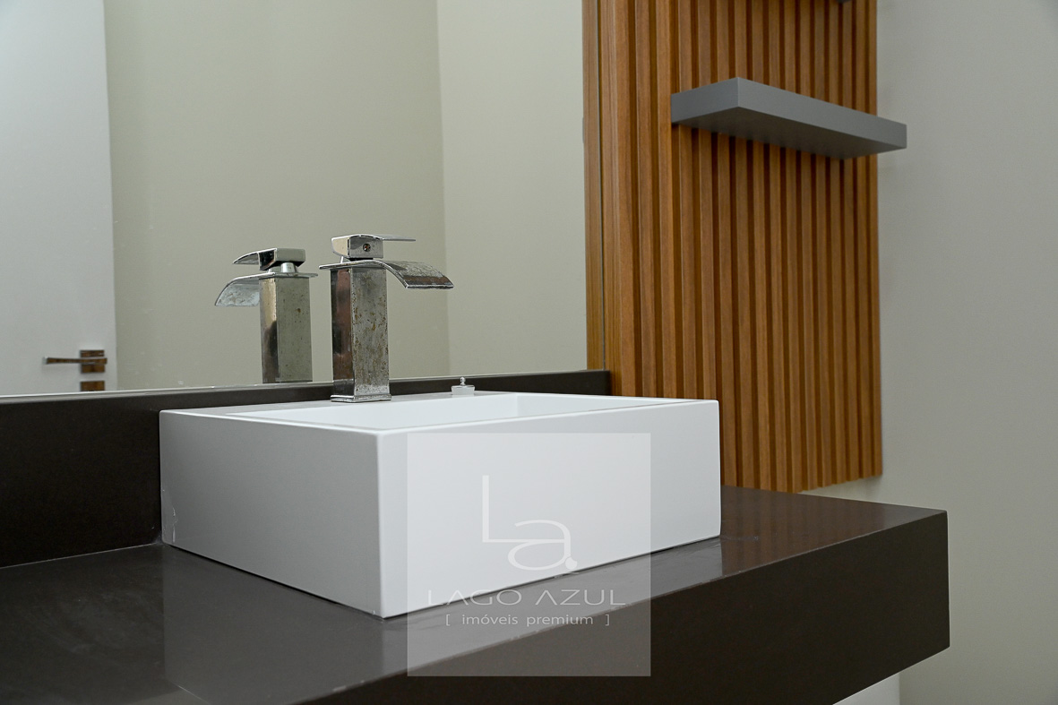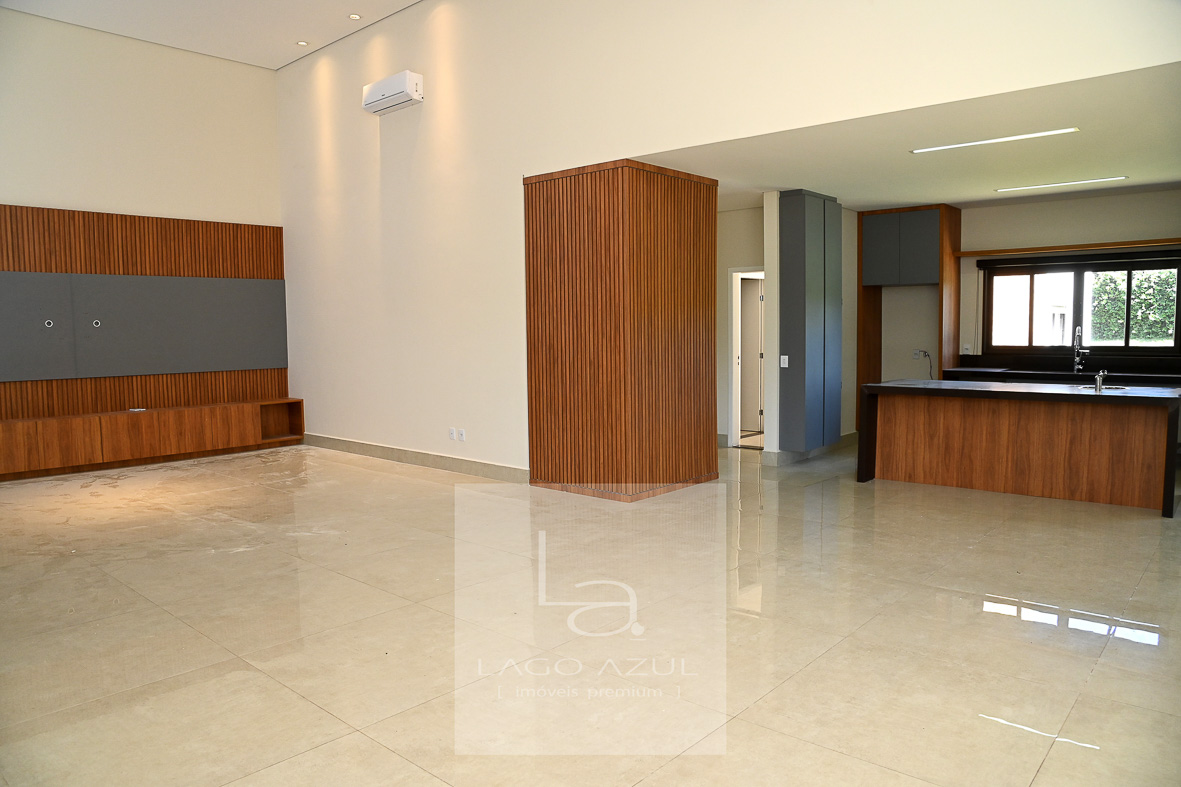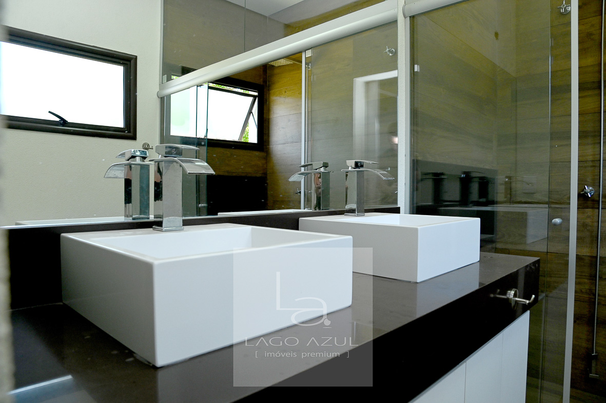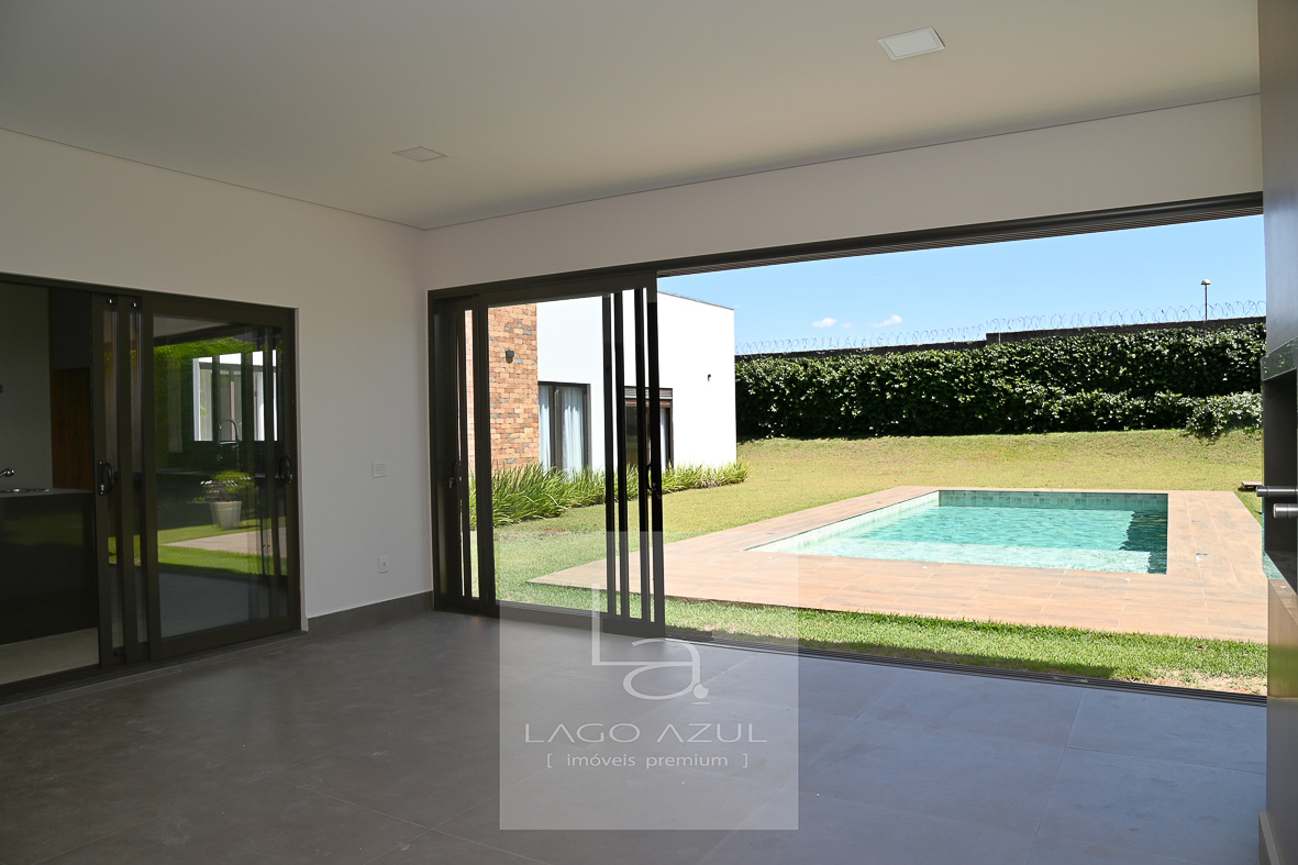 Casa possui:4 suítes, 3 delas com closet. A suíte Máster com porta balcão voltada para a piscina, com persianas em alumínio operada por controle remoto, ar condicionado, chuveiros e pias duplas, modulados no quarto e no closet, box em vidro temperado até o teto. As demais suítes também com ar condicionado, modulados no quarto e no closet (menos uma delas que não possui o closet), e box de vidro temperado até o teto. Todas elas também com persianas em alumínio operada por controle remoto. Sala de estar e sala de jantar com ar condicionado, pé direito duplo, integradas à cozinha, que possui modulados, balcão central e fogão cooktop, cozinha esta que que por sua vez também é integrada com as salas e com a área gourmet. Lavabo com modulados. Área gourmet, com armários, ponto de TV, pia, cooktop, banheiro de apoio e churrasqueira. A área gourmet é totalmente fechada em vidro, o que oferece praticidade e a oportunidade de ser utilizada independentemente do clima. A casa tem aquecimento solar, e no corredor tem um bom armário espelhado (tipo roupeiro), além de vários cômodos com cortinas. Piscina com prainha em azulejo, toldo solar, depósito e lavanderia com planejados. Garagem coberta para 3 carros e descoberta para mais 3.