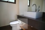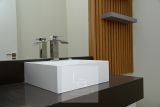 A casa tem aquecimento solar com apoio elétrico.