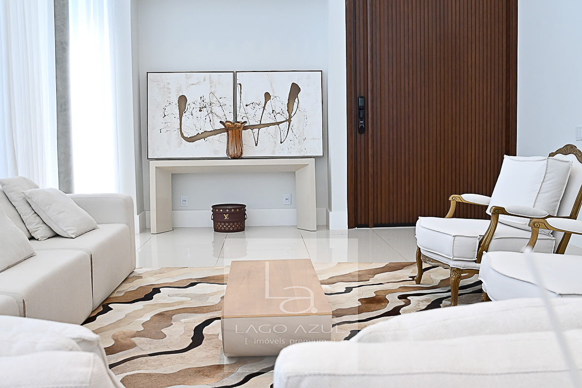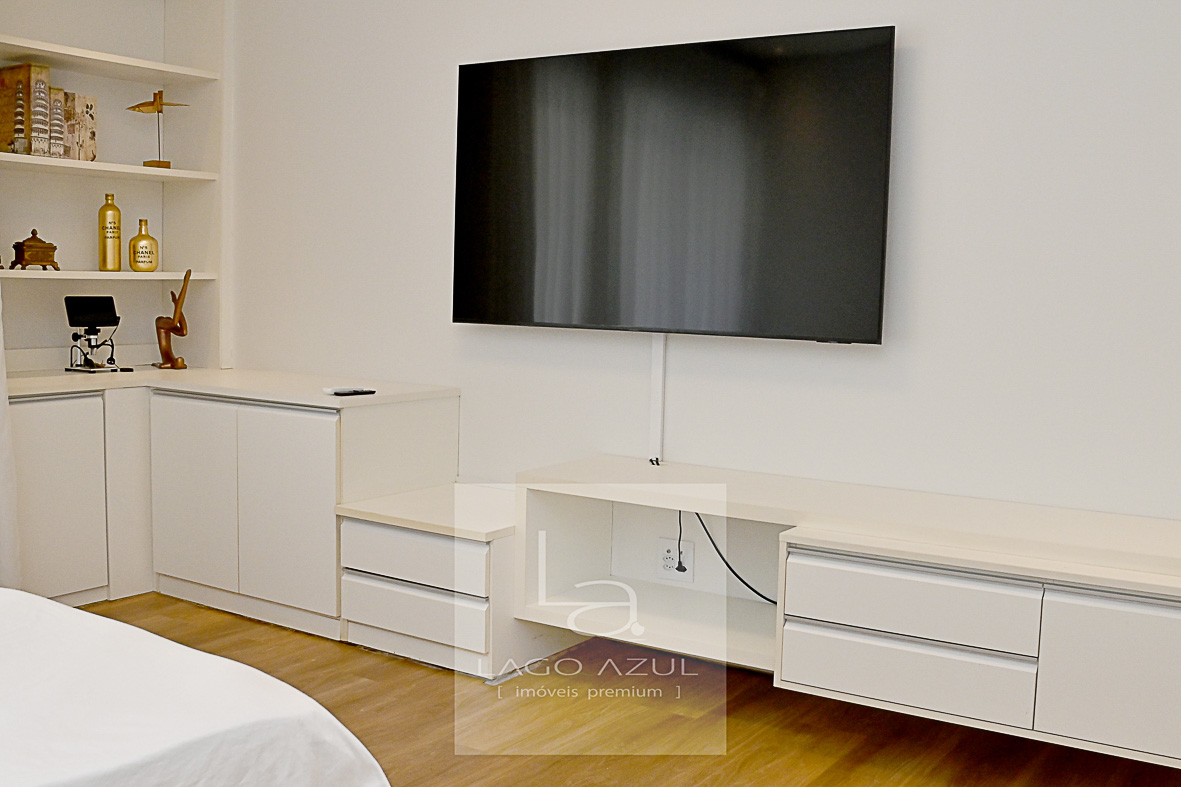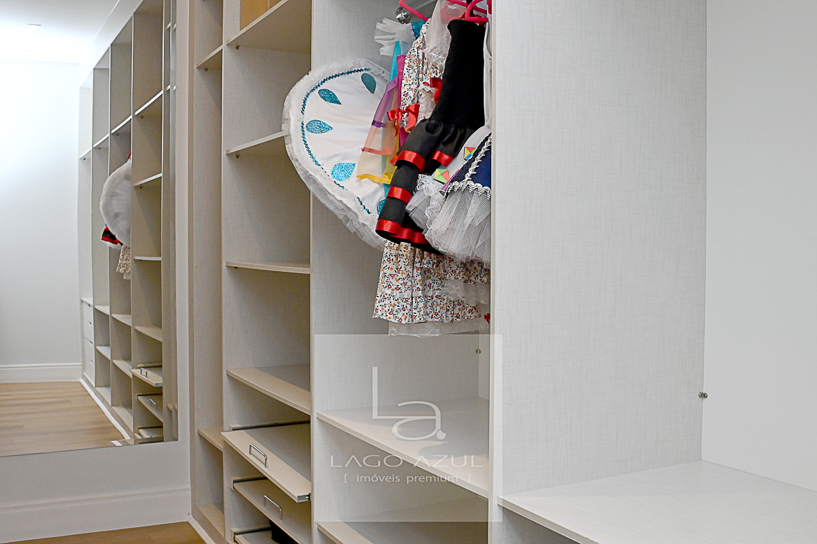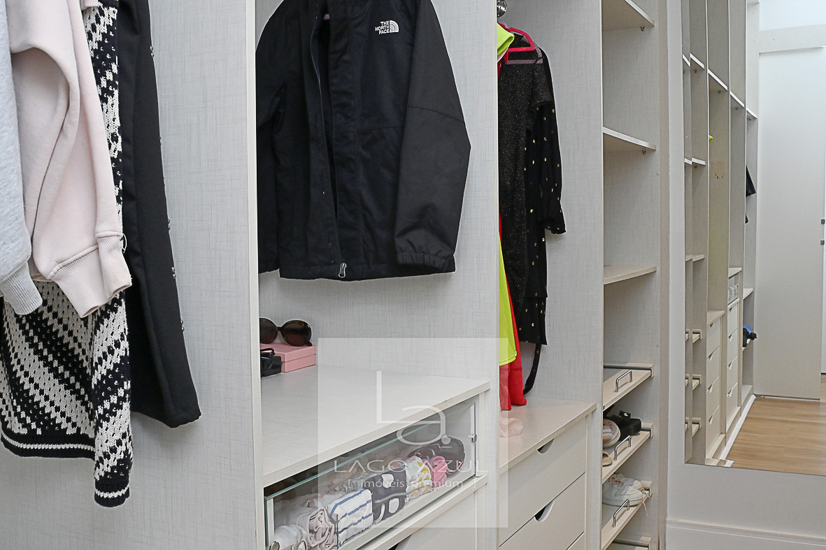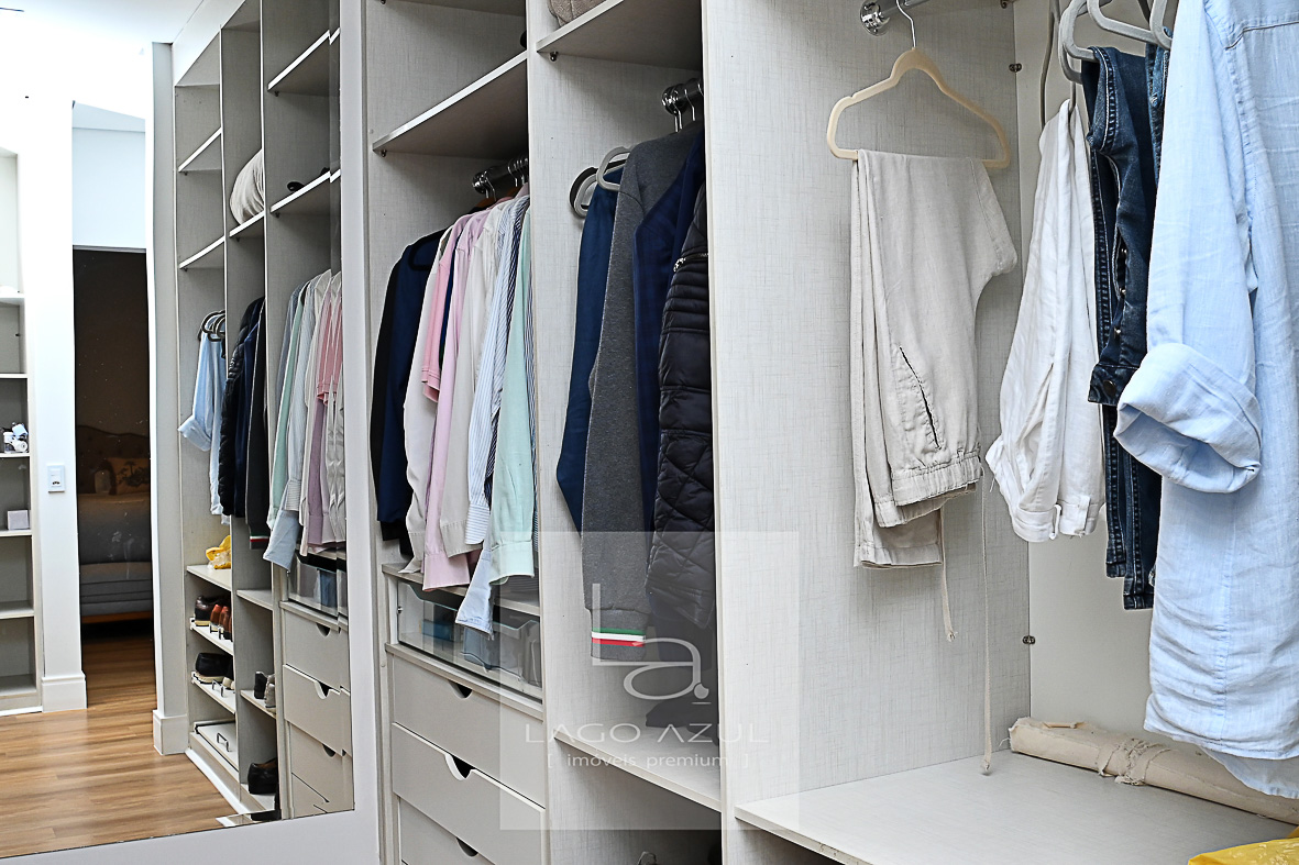Imóvel possui: 5 suítes, sendo 1 no térreo e 4 no andar superior, todas com closet.