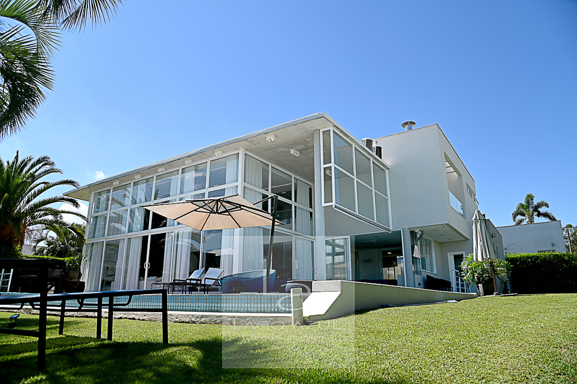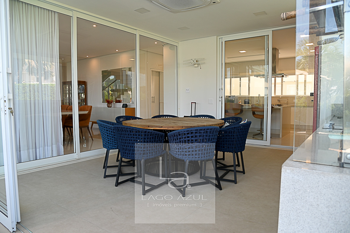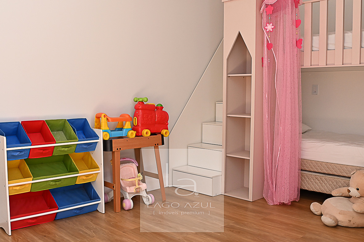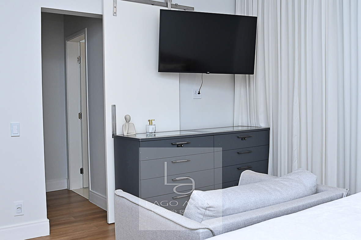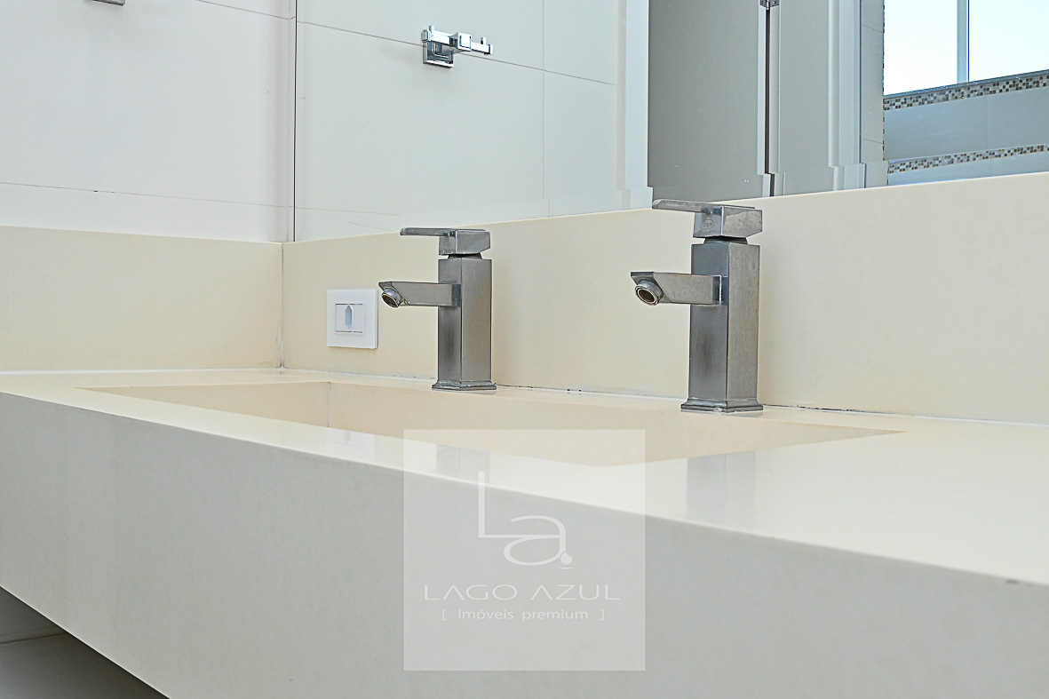 Imóvel possui: 5 suítes, sendo 1 no térreo e 4 no andar superior, todas com closet.