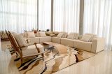 Sala 3 ambientes em L, integrando sofisticação e aconchego.