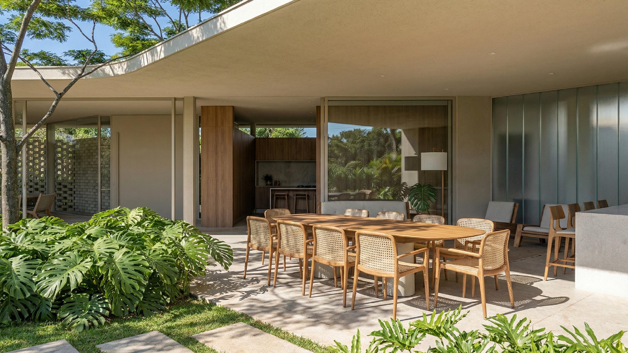 Encantadora residência térrea que traduz sofisticação, exclusividade e identidade arquitetônica. Com projeto autoral assinado por Fernando Poles e executada com o padrão construtivo já reconhecido da Família Arza, esta casa foi pensada para quem valoriza design atemporal, materiais nobres e integração absoluta entre conforto e elegância. Implantada em um terreno de 1.298,54 m², a residência oferece 485 m² de área total, com ambientes amplos, iluminados e perfeitamente conectados. Logo na entrada se percebe que o projeto oferece imponência e leveza. As salas de estar e jantar se integram harmoniosamente à cozinha e à área gourmet, formando um grande espaço social voltado para o lazer.
